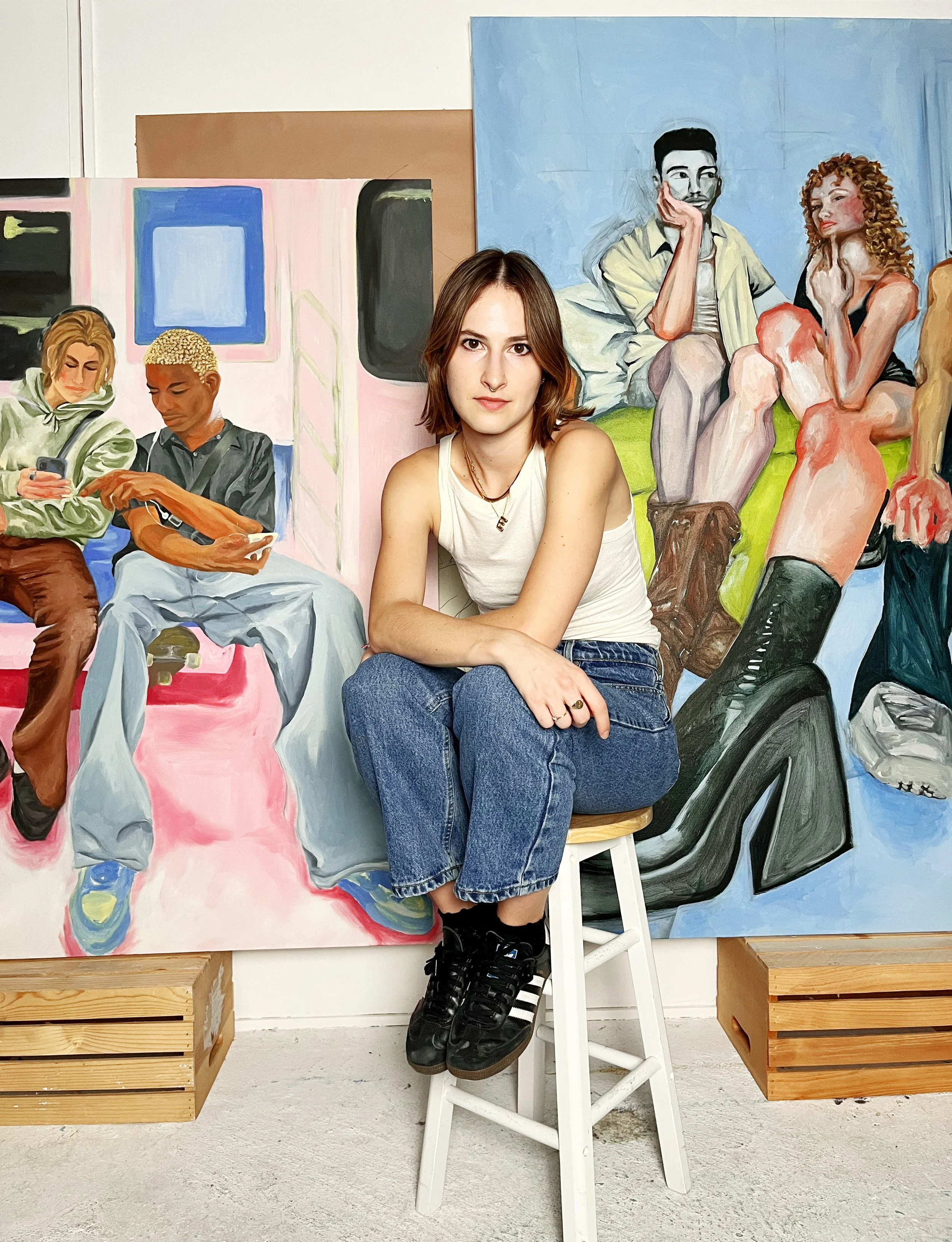 Primarily an oil painter, she explores the complex connection between the prescribed material world and the intimate unseen realms of the psyche. Working from photos taken on her phone for her figurative works, Warfel references the inescapable prevalence of technology and timely dilemma of trying to live in the moment while surrounded by endless streams of information. Born and raised in Lancaster, PA, she studied art history and studio art at Middlebury College in Vermont, the Sorbonne in Paris, and the Art Students League of New York.